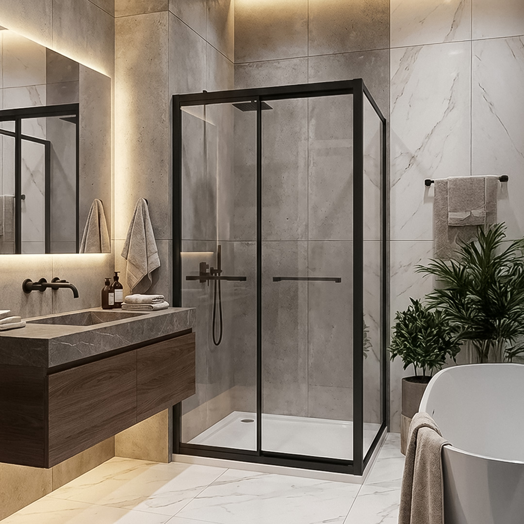 A modern sliding shower cabin designed with a refined architectural appearance and dual-direction soft opening and closing, providing a quiet, safe, and practical user experience in wet areas. The system combines elegance, smooth operation, and durability with minimal visual impact and high manufacturing standards.